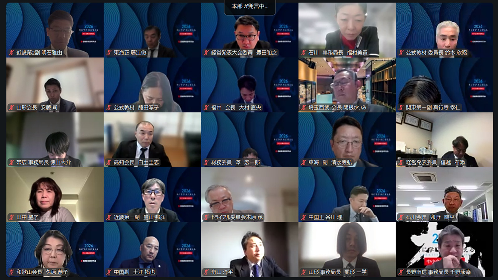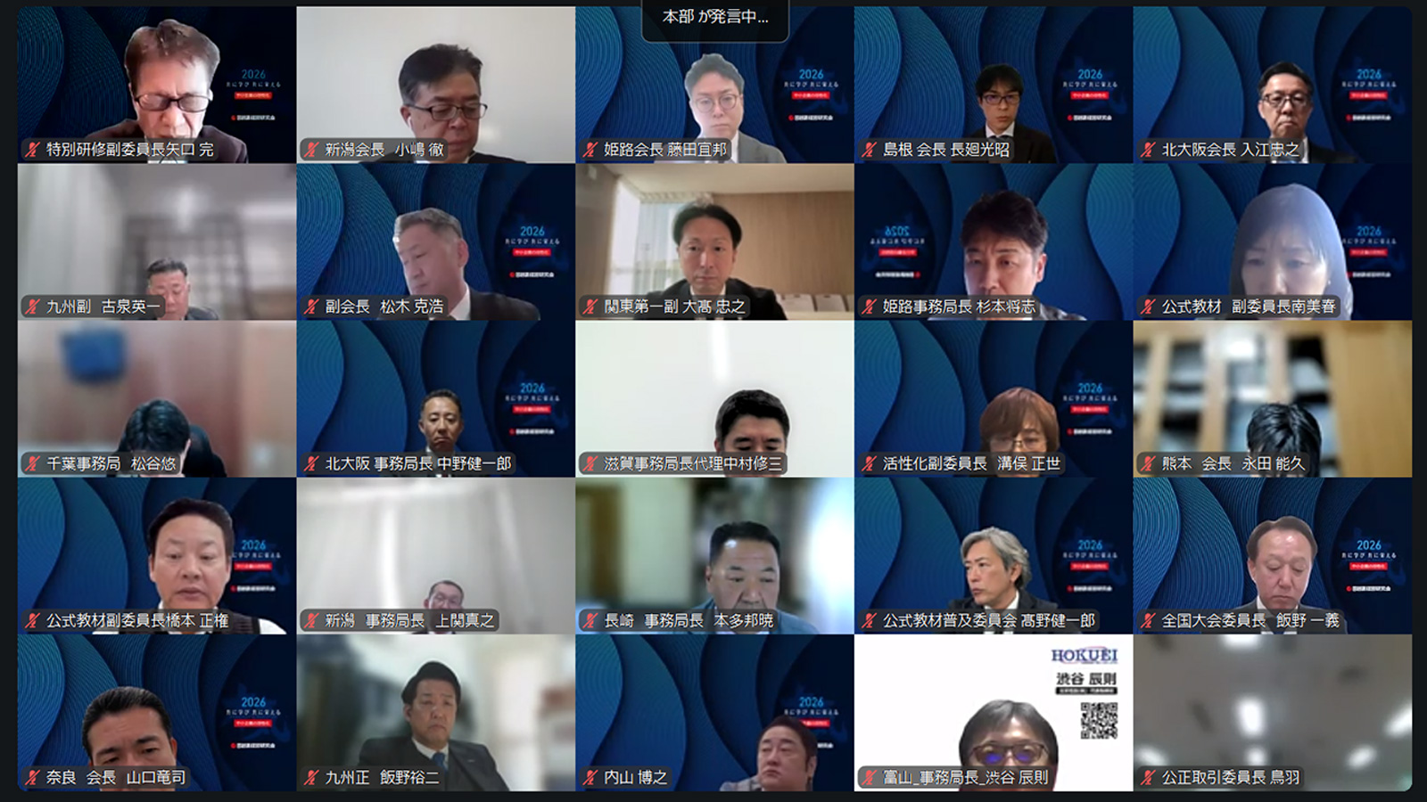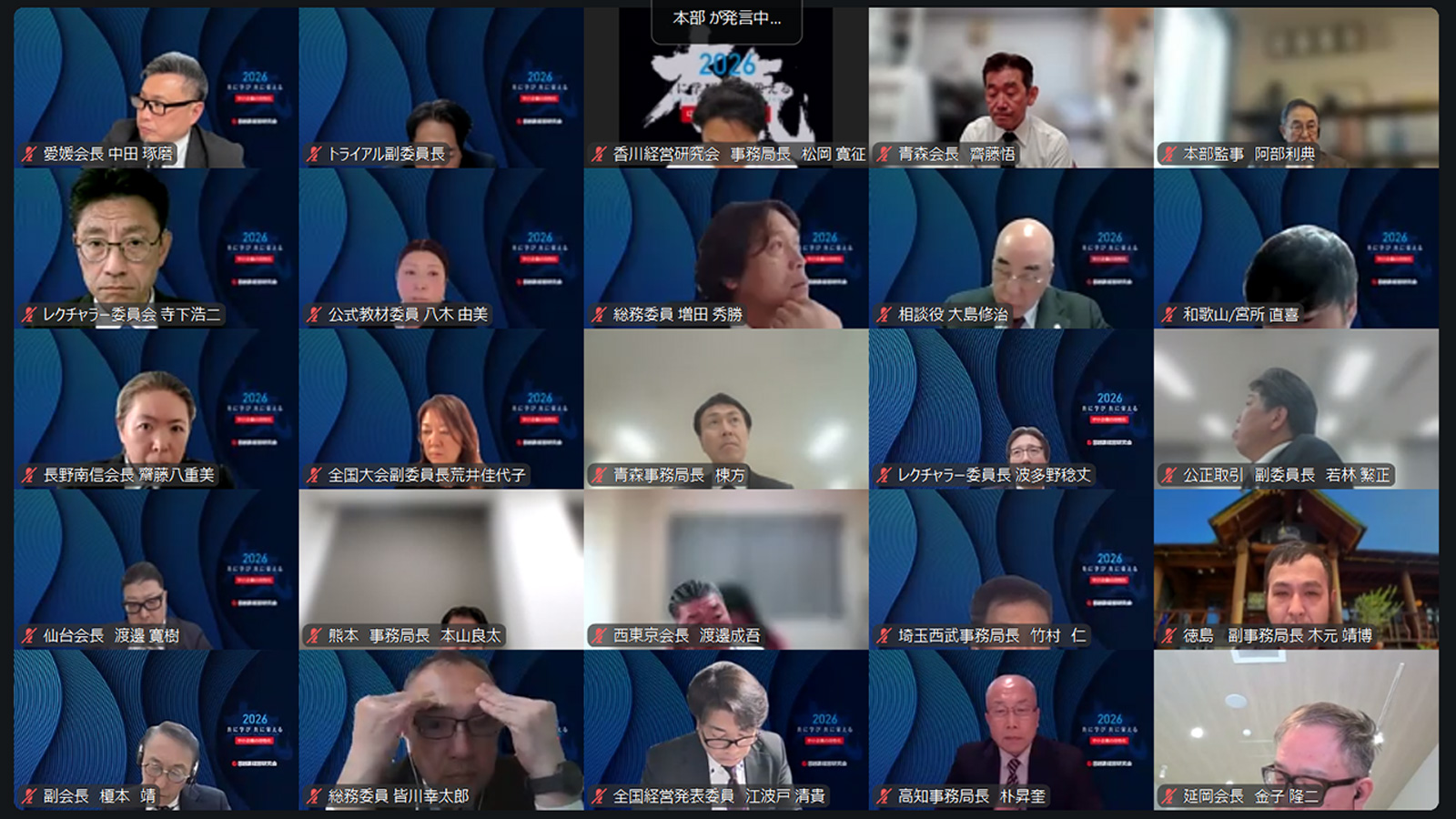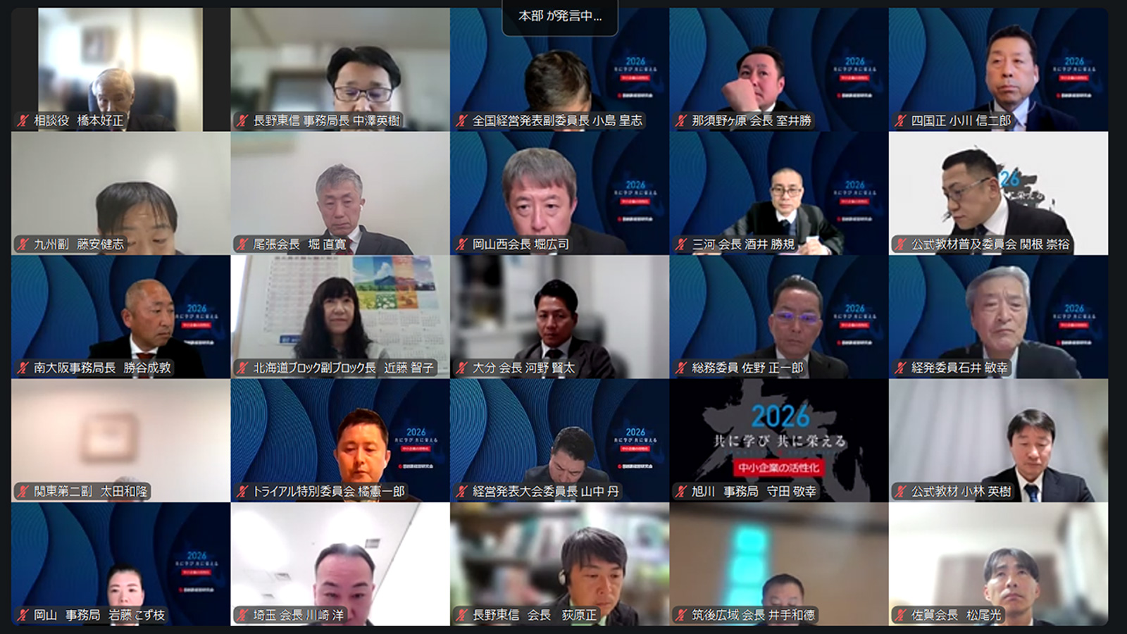 さらに、2026年度本部事業予算案について審議が行われました。本部負担金の入金確定を受けて予算案が上程され、今後の本部主催事業や各種支援施策に活用していく方針が説明されました。あわせて、各地経営研究会に対しては、会員名簿提出や本部負担金納入の期限厳守が強く呼びかけられました。本予算案についても、採決の結果、全会一致で承認されました。