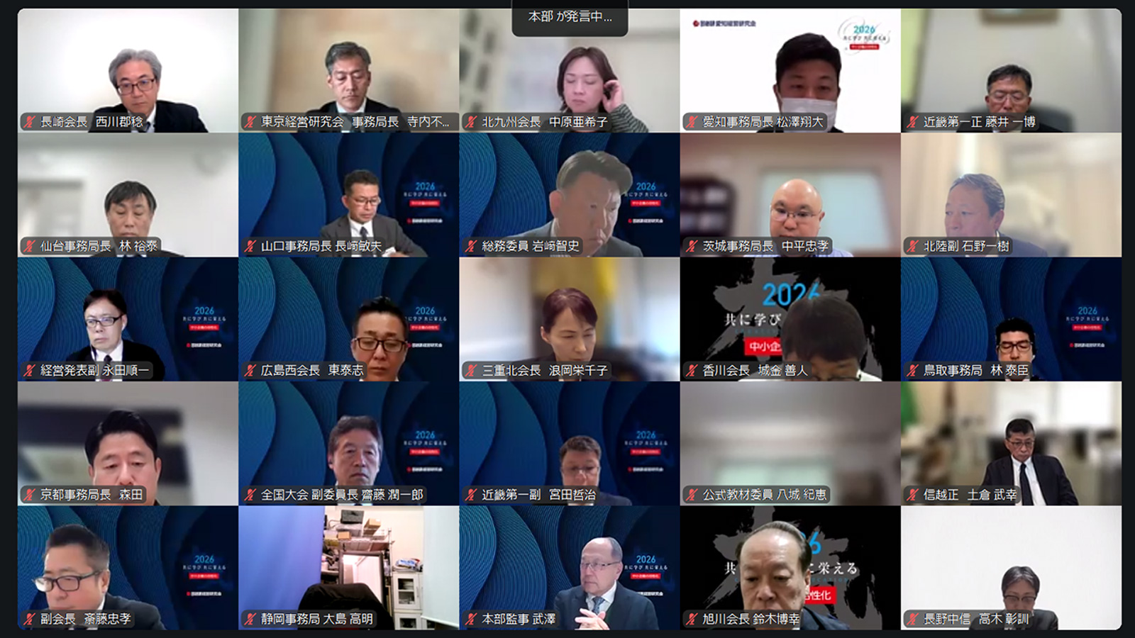 冒頭では、榎本本部副会長より開会宣言が行われ、国際情勢や原油価格の不安定化など、企業経営を取り巻く環境が一層厳しさを増す中だからこそ、仲間と共に学び、自らを変化させていく必要性が語られました。